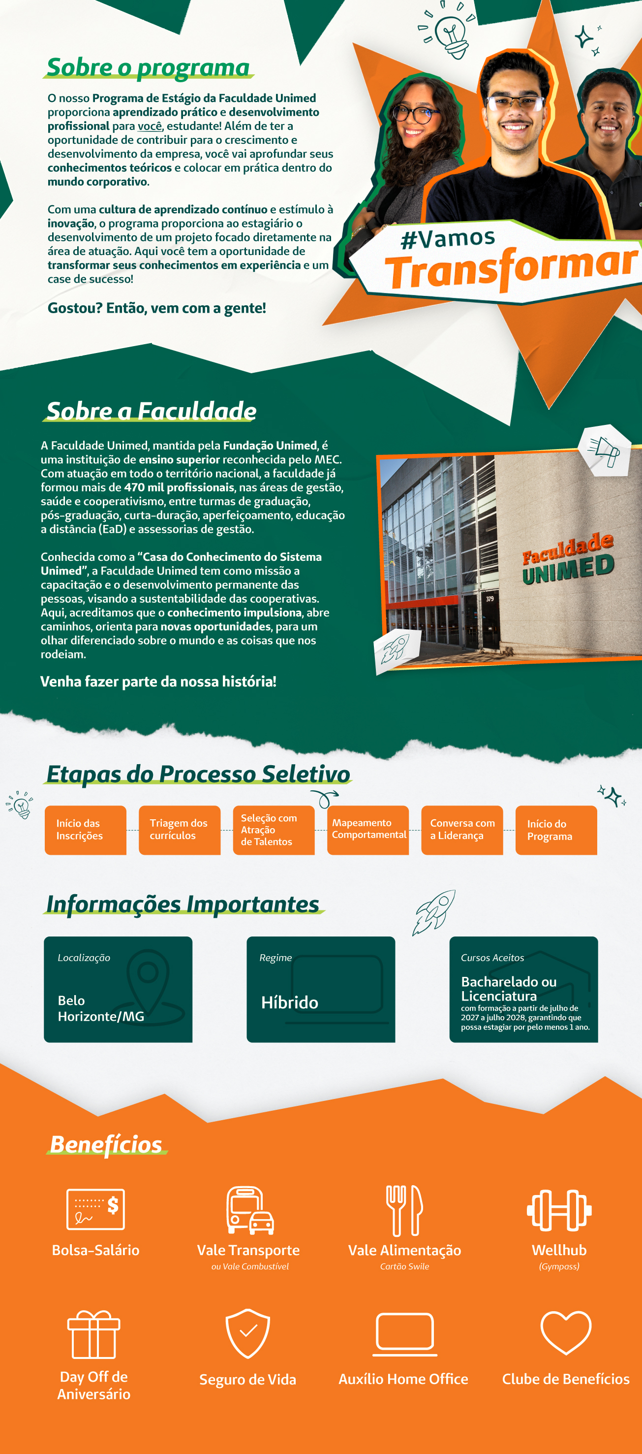 Conhecida como a “Casa do Conhecimento do Sistema Unimed”, a Faculdade Unimed tem como missão a capacitação e o desenvolvimento permanente das pessoas, visando a sustentabilidade das cooperativas. Aqui, acreditamos que o conhecimento impulsiona, abre caminhos, orienta para novas oportunidades, para um olhar diferenciado sobre o mundo e as coisas que nos rodeiam.